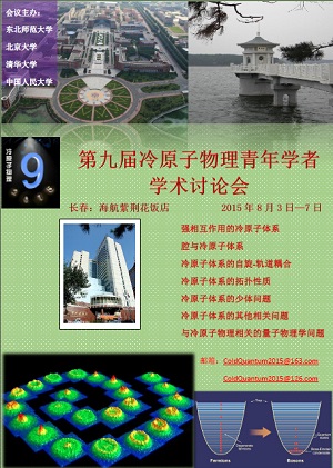 由东北师范大学,北京大学,清华大学和中国人民大学联合主办的《第九届冷原子物理青年学者学术讨论会》定于 2015年 8 月 3 日至 7 日在长春召开。会议目前处于邀请注册阶段,报名注册截止日期为2015年7月15日,请有意参加本次研讨会的老师同学抓紧时间注册报名,注册网址: