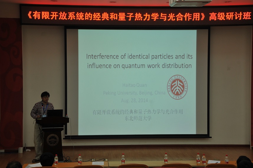 8月28日、29日两天,“有限开系统的经典和量子热力学与光合作用”高级研讨班及国家重点实验室项目活动会议在365bet体育投注平台成功举办。此次活动由东北师范大学、北京计算科学研究中心和中国科学院理论物理研究所/理论物理国家重点实验室联合举办,由东北师范大学物理学院承办。会议的宗旨是促进国内量子开系统、量子热力学,统计物理和光合作用中的量子物理等相关领域的同行之间的实质性合作交流。